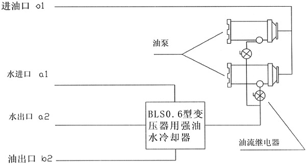 5、单台冷却器使用时,一般使用双油泵,一台使用另一台备用,如单台设备不能满足使用要求时,可以采用多台联合使用,但组合必须符合下列规定: