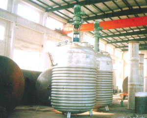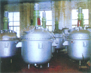 本全套装置是用于生产不饱和聚酯树脂、酣 醛树酯.环氧树脂、AB來彳脂、油漆的关键设备。全 套设备由反应锅.竖式分馏柱.卧式冷凝器、贮水 器、溢油槽.管线(稀释爸)等组成,全套设备与物 料接触部分均采用不锈钢制作。